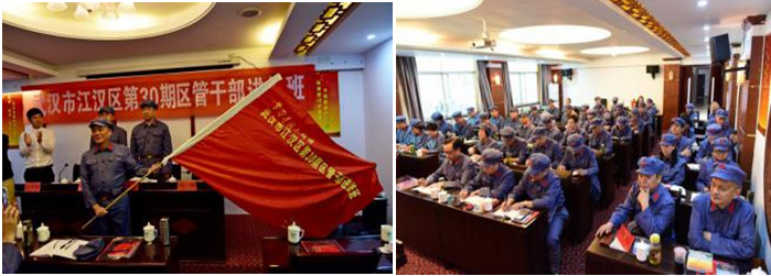 17日上午,进修班举行了简短的开班仪式:颁发红军帽;授予班旗;井冈山干部教育学院常务副院长明荆同志致欢迎词;江汉区委党校常务副校长范汉春同志做开班动员,希望全体学员学习和传承井冈山精神,自觉加强党性修养,认真践行“三严三实”,不断增强政治意识、大局意识、核心意识、看齐意识,树立党员的先锋形象,用实际行动体现信仰信念的力量,让井冈山精神放射出新的时代光芒;全体学员在班旗前进行庄严宣誓。仪式完毕后,学员们身着红军服,头戴红军帽,认真聆听了井冈山会师纪念馆原馆长、井冈山干部教育学院兼职教授刘晓农所作的专题讲座《井冈山斗争和井冈山精神》。生动的史实,精彩的讲述,使学员们对井冈山革命根据地的历史地位有了新的认识,对井冈山精神的丰富内涵有了更深刻的领悟。