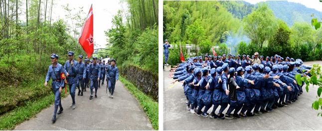 18日上午,全体学员在当年毛泽东同志立下三大纪律的遗址荆竹山“雷打石”前进行了铁纪教育、穿越峡谷、抢救伤员、胜利会师等红色体验教学。全体学员听从命令,分为两组开展拓展训练。唱团歌、喊口号、穿峡谷、抬担架,大家身临实地,感同身受当年红军官兵的战斗生活,充分展现了严守纪律、精诚团结的良好形象。