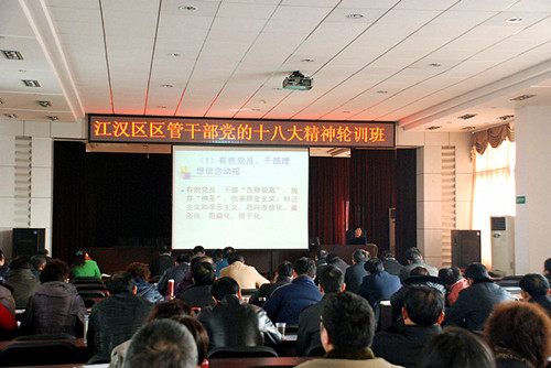 12月12日上午,全区区管干部学习贯彻党的十八大精神报告轮训班在区委党校开班, 拉开了我区领导干部学习贯彻十八大精神集中培训的序幕。 此次轮训班共举办2期,每期安排4个专题,主要讲授党的十八大报告精神解读、完善社会主义市场经济体制和加快转变经济发展方式、改善民生和创新管理问题及党的建设科学化水平等方面内容,对全区区管干部460余人进行轮训。