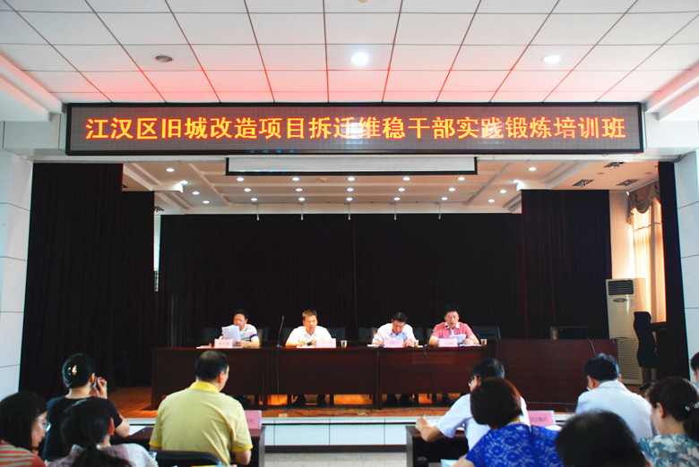 9月2日上午, 江汉区旧城改造项目拆迁维稳干部实践锻炼培训班在区委党校举行开班仪式。区委常委、区委组织部部长许华,区委组织部副部长、区考评办主任曾昳军,区委党校常务副校长范汉春、区城改办主任乔晓虹等领导出席了开班仪式。开班仪式由区委组织部副部长、区考评办主任曾昳军同志主持。