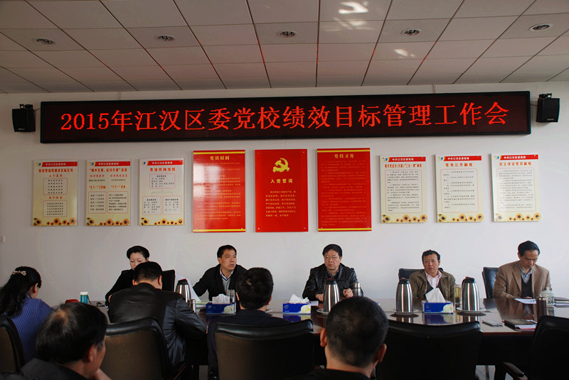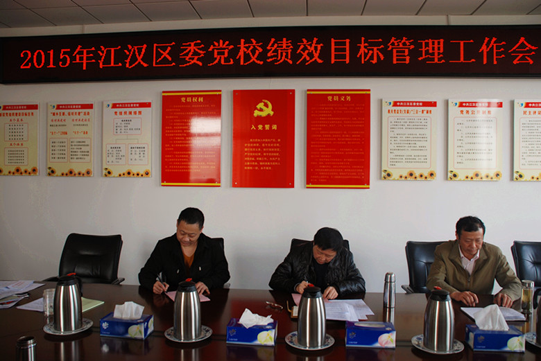 4月21日,江汉区委党校召开2015年绩效目标管理工作会,会议认真总结了2014年党校工作,对2015年工作进行了全面部署,会上,常务副校长范汉春与分管领导和各科室、机关总支、工会(妇委会、人口与计生)负责人签订了2015年绩效目标责任书。会议表彰了区委党校荣获2014年度区级及以上先进集体和先进个人,以及区委党校2014年度先进科室和先进个人。