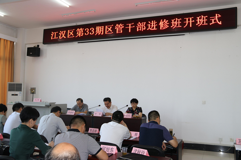2018年9月3日上午,江汉区第33期区管干部进修班开班式在区委党校举行。按照区委要求,本期培训班由区委组织部和区委党校组织和实施,来自全区各单位、部门的48名区管干部参加培训。