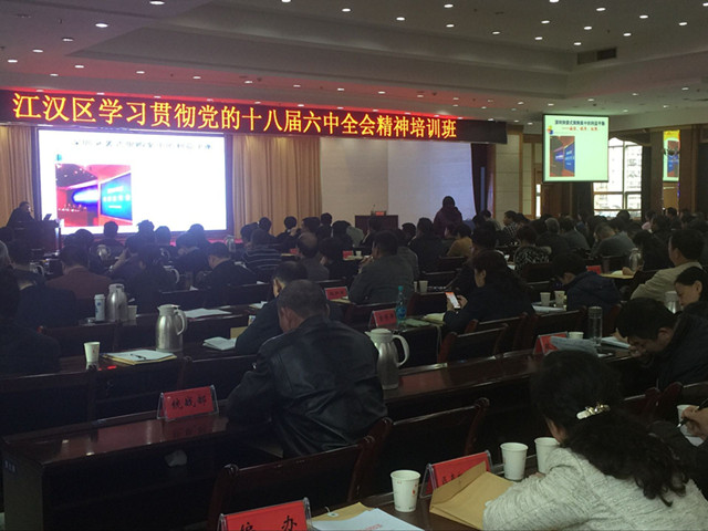 3月28日下午区委组织部、区委党校联合举办了江汉区学习党的十八届六中全会精神培训班,全区400多名区管干部在区机关参加了集中培训。