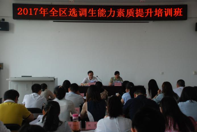 为进一步优化江汉区干部年龄结构,加快中青年干部队伍建设,提高青年干部干事创业能力,按照区委要求,区委组织部、区委党校组织开展的2017年江汉区选调生能力素质提升培训班于7月10日开班。培训班为期5天,来自区内各个岗位上的56名科级及以下选调生参加此次集中学习。