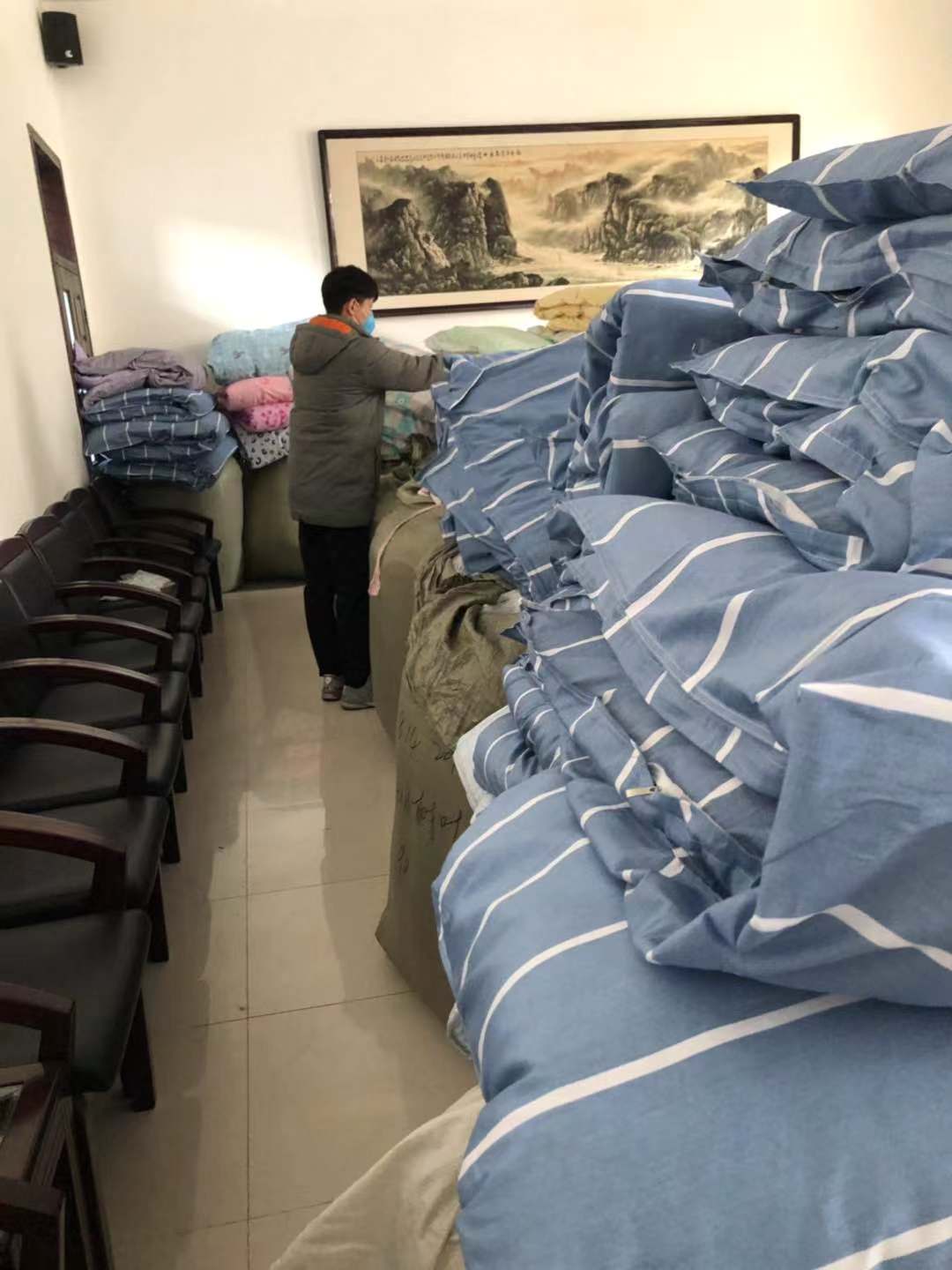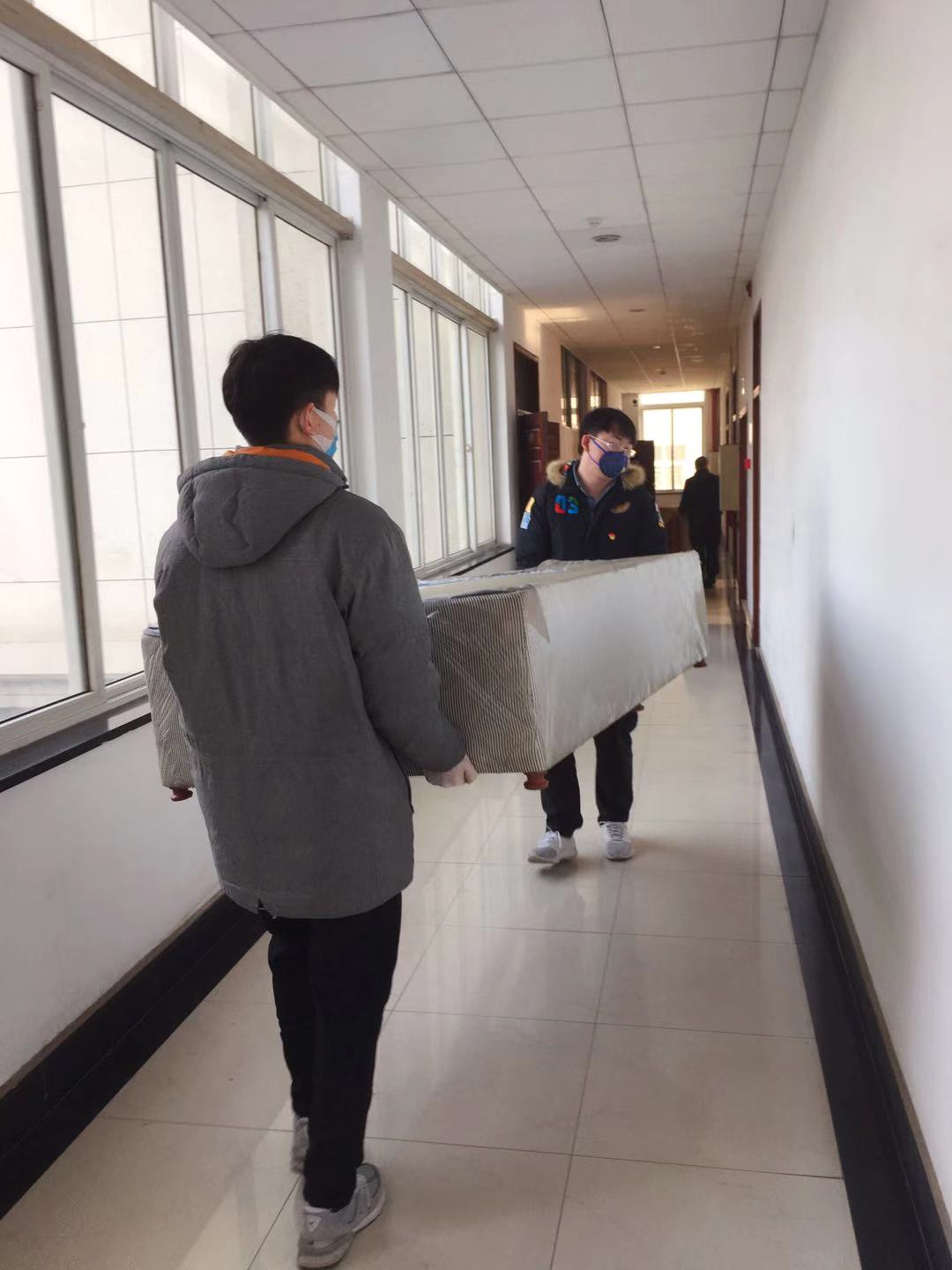 3、“兵马未动、粮草先行”,为隔离点提供物资保障。为保障隔离点工作的有效运转,积极争取支持,为医护人员和隔离人员配置各种物资,包括热水器4台、空调9台、被子150套、洗脸盆150个、香皂150个、肥皂盒150个、洗衣皂150个、牙刷牙膏150套、棉拖鞋150套、洗发水20瓶、毛巾150条。将2楼办公室进行改造,购置空调和热水器。整理了34个隔离人员入住的房间,放置了毛巾、脸盆、香皂等生活用品。为医护人员和安保人员提供了良好的生活居住环境。