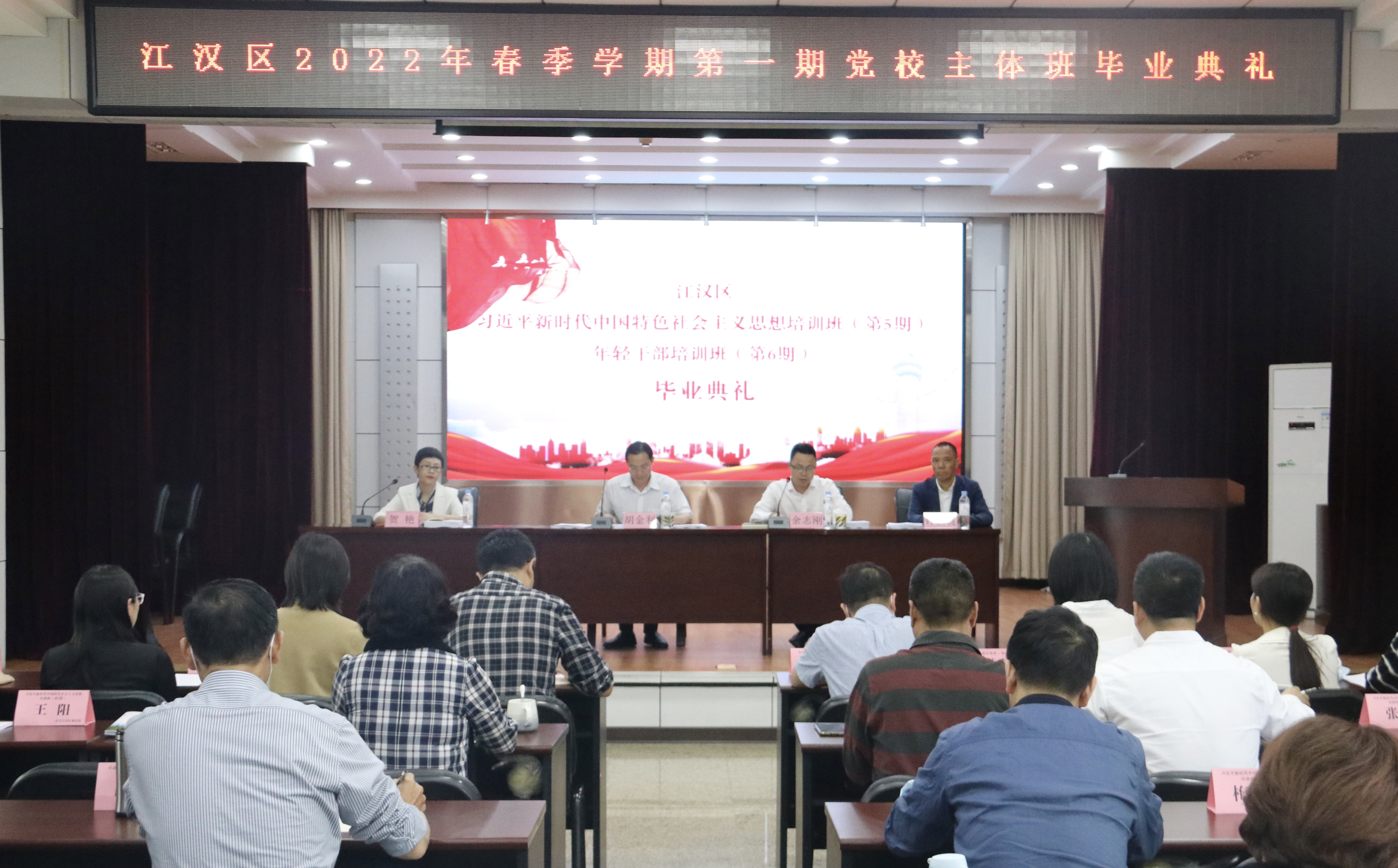 5月9日下午,江汉区举办2022年春季学期第一期党校主体班毕业典礼。区委常委,区委组织部部长,区委党校校长胡金利出席毕业典礼,并为学员颁发荣誉证书和毕业证书。