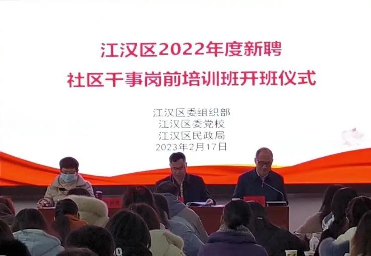 为深入贯彻落实党的二十大精神,深化新时代党建引领加强基层社会治理,提升新入职社区工作者的理论素质、服务意识和履职能力。2月17日,江汉区2022年度新聘社区干事岗前培训班在江汉区委党校举办。区政协副主席、区民政局局长刘卫红出席开班式并作动员讲话,2022年度江汉区面向社会公开招聘社区干事拟聘用人员(第一批),共79人参加了培训,区民政局副局长叶频捷主持开班式。