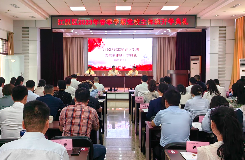 江汉区习近平新时代中国特色社会主义思想培训班(第7期)、年轻干部培训班(第8期)全体学员参加开学典礼。