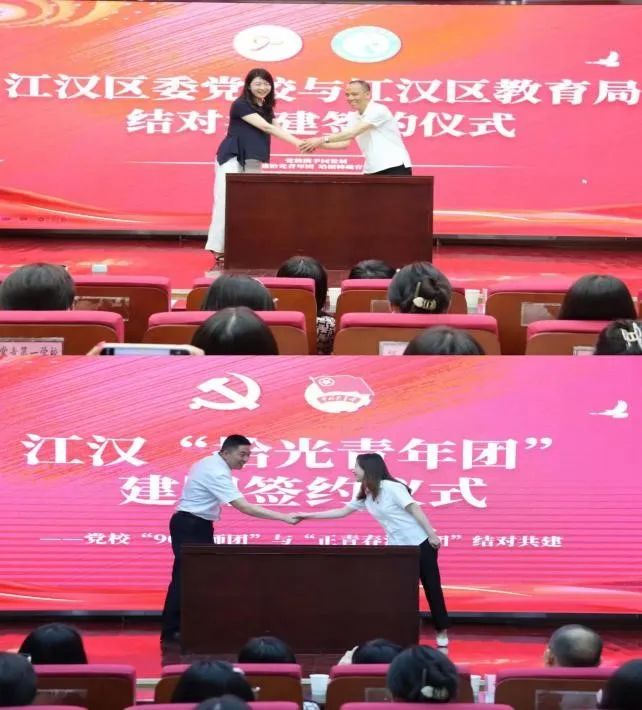 6月16日,江汉区委党校与区教育局联合开展以“党教携手同发展 培根铸魂育新篇”为主题的共建“拾光青年团”党教青年宣讲交流活动。区委党校分管日常工作的副校长贺艳,区教育局党委副书记、副局长饶雁出席活动,区委党校“90讲师团”、区教育局“正青春江教团”参加活动。