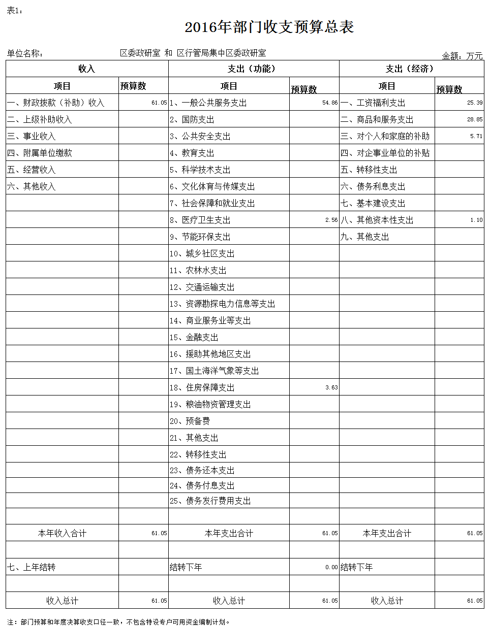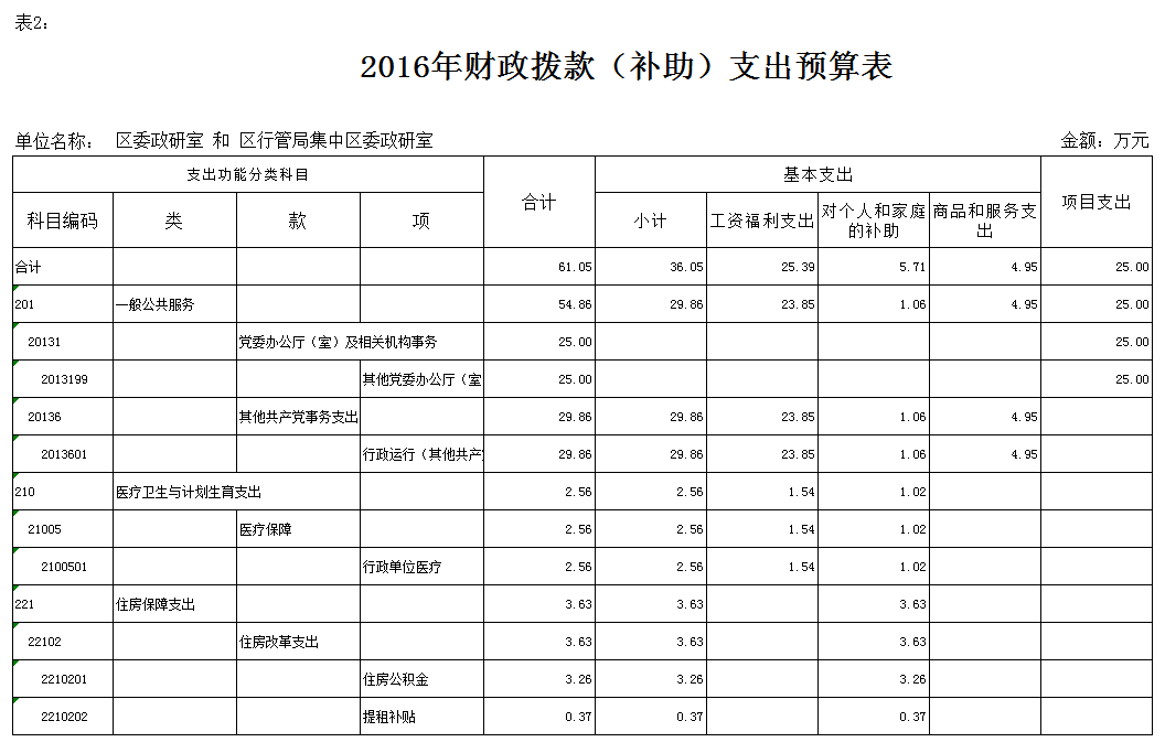 2016年财政拨款(补助)预算数61.05万元,安排情况如下: