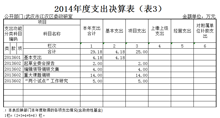 第三部分、武汉市江汉区委政研室2014年度部门决算表