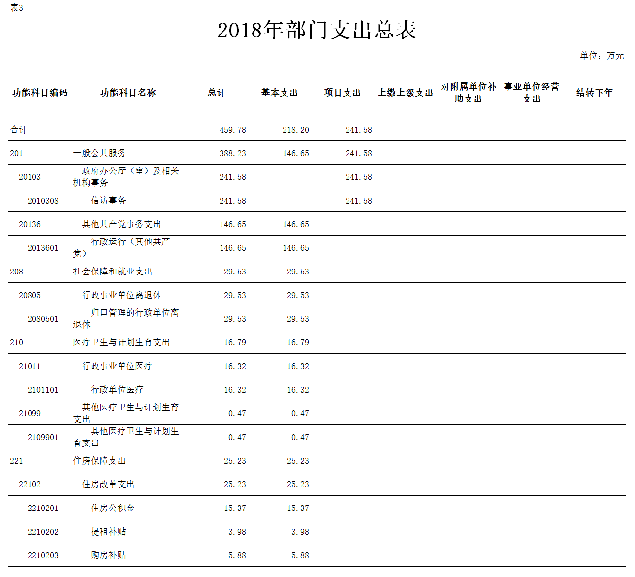 一般公共服务支出388.23万元;社会保障和就业支出29.53万元;医疗卫生支出16.79万元;住房保障支出25.23万元。