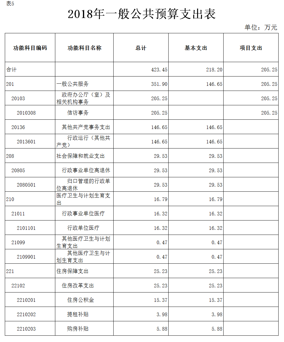 2018年一般公共预算财政拨款(补助)预算数423.45万元,安排情况如下: