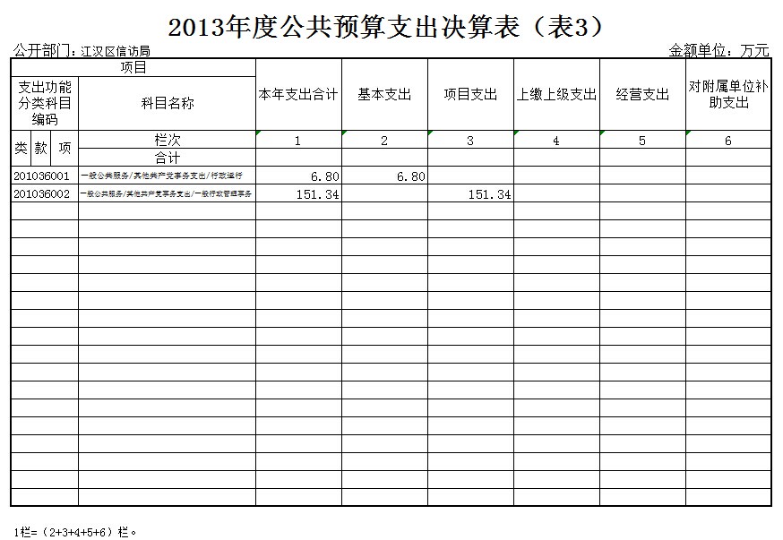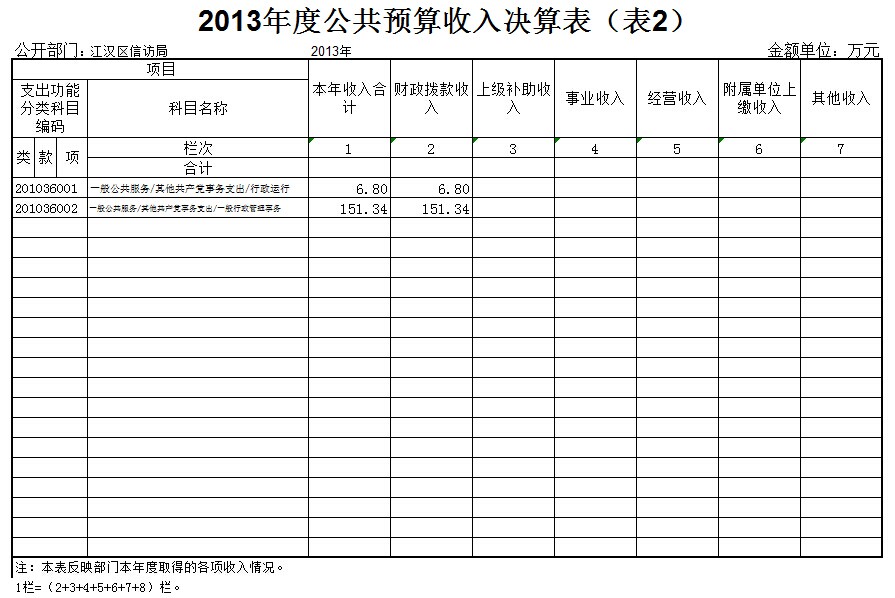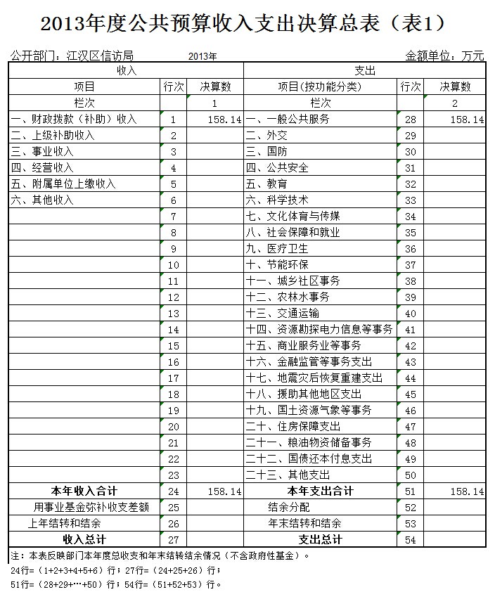 二、武汉市江汉区信访局2013年度公共预算收入支出决算总表