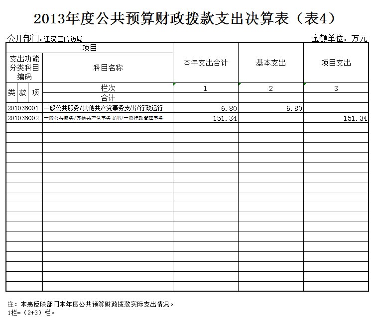 四、武汉市江汉区信访局2013年度公共预算支出决算表