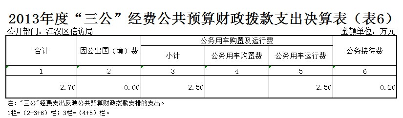 八、武汉市江汉区信访局2013年度“三公”经费公共预算财政拨款支出决算表