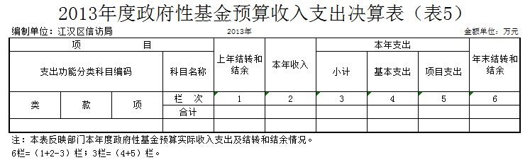 六、武汉市江汉区信访局2013年度政府性基金预算收入支出决算表