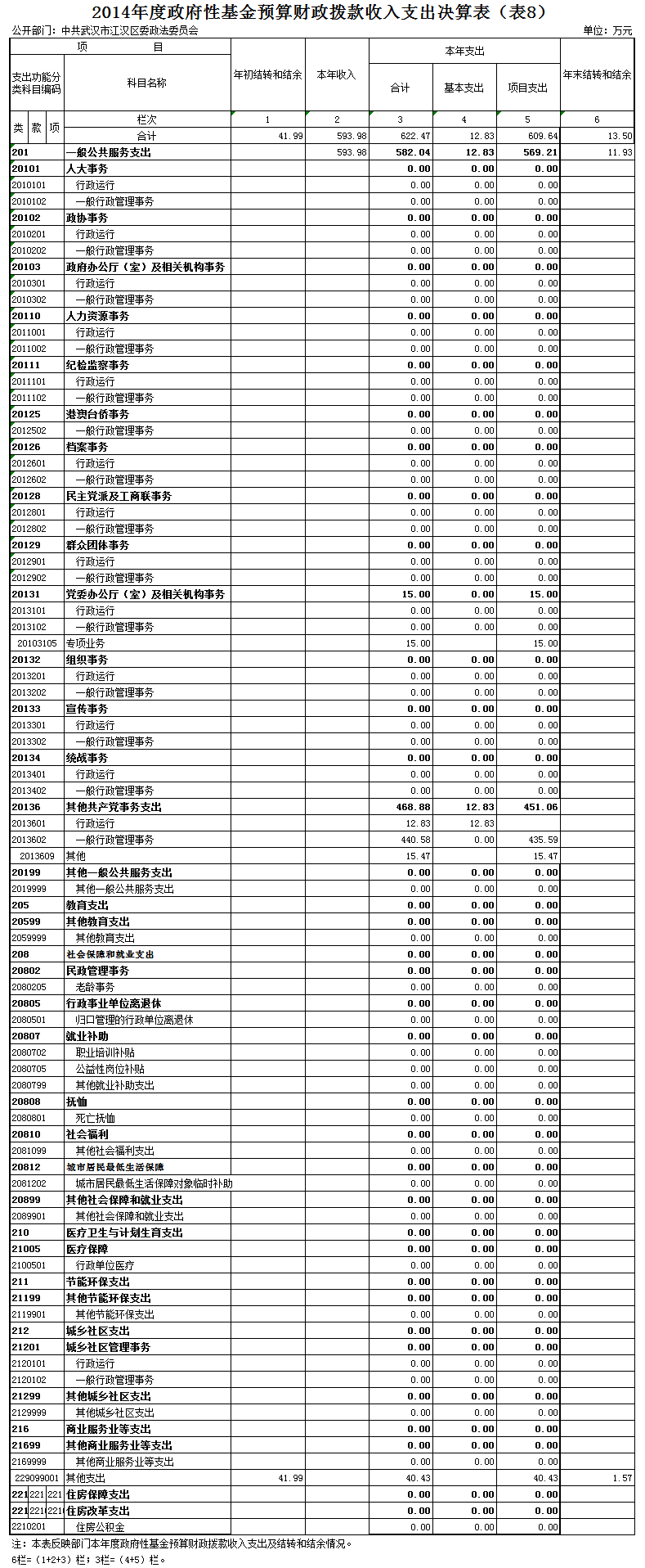 第三部分、中共江汉区委政法委员会2014年度部门决算表