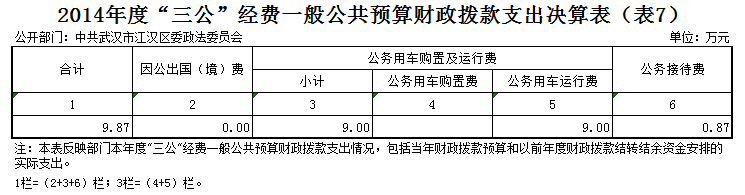 2014年度“三公”经费财政拨款支出决算为9.87万元。