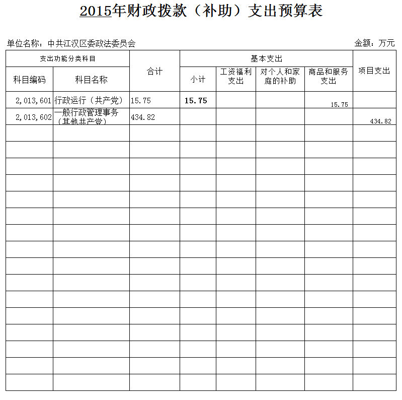 中共江汉区委政法委员会2015年财政拨款(补助)支出预算表