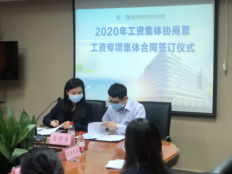 10月22日,武汉爱尔眼科医院汉口医院召开2020年度工资集体协商会议暨工资专项集体合同签订仪式。