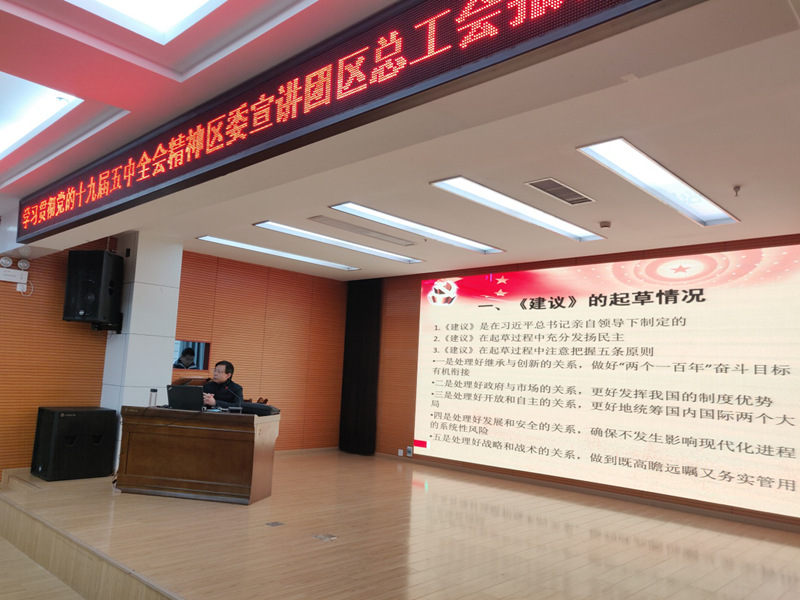 12月21日,江汉区总工会组织开展党的十九届五中全会专题宣讲活动,党组书记、常务副主席张连芳为党员干部做专题辅导。