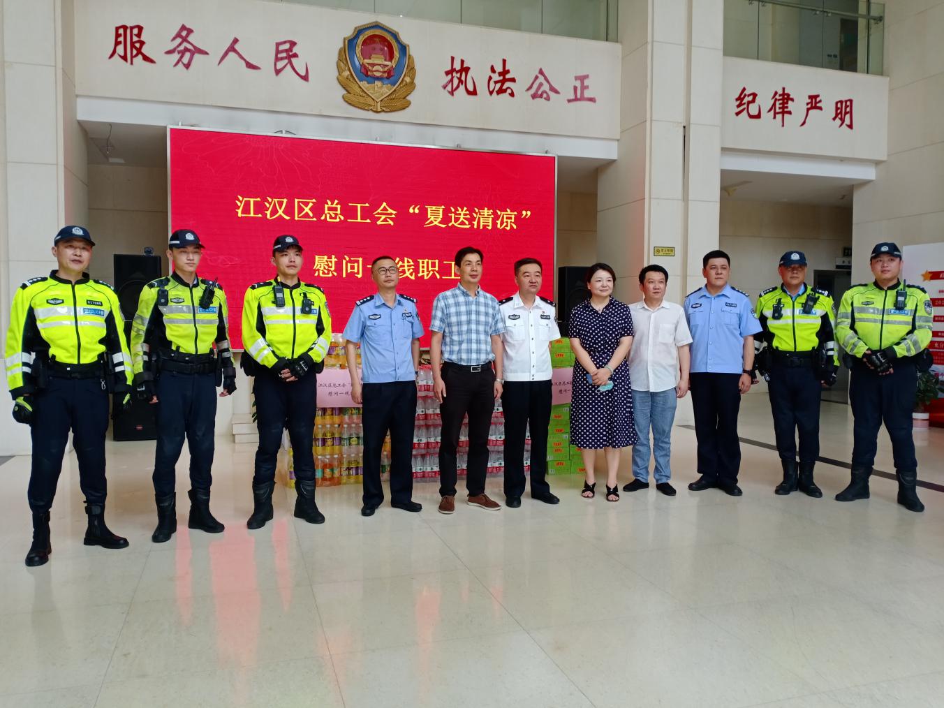 夏日酷暑来袭,江汉区全面启动2021年度“夏送清凉”慰问一线职工活动,区委区政府领导率队分赴城市运行管理、基层服务治理、生产经营企业一线,为快递小哥、环卫工人、交通干警、建筑农民工、疫情防控专班人员等送上防暑降温用品,看望高温天气下坚守平凡岗位,为江汉经济社会发展做出贡献的一线职工。