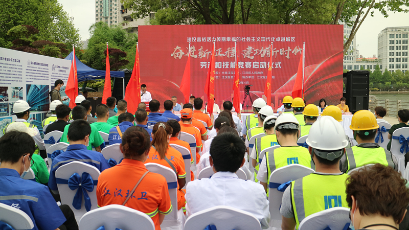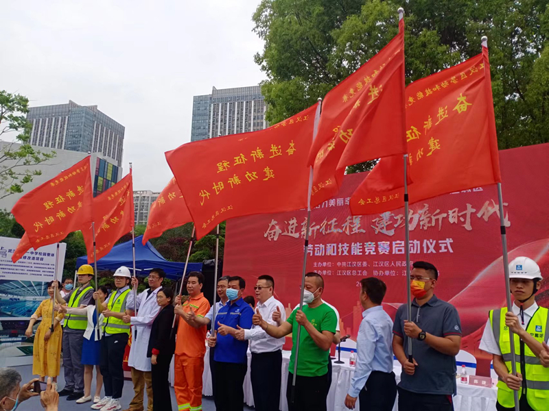 劳动竞赛启新程,建功立业续精彩。4月27日,在嘹亮的《劳动者最光荣》歌声中,以“奋进新征程 建功新时代”为主题的江汉区2022年劳动和技能竞赛启动仪式在菱角湖新增绿地建设项目现场拉开序幕。