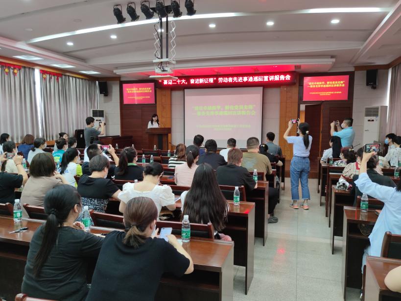 6月28日,江汉区“喜迎党的二十大,奋进新征程”劳动者先进事迹宣讲团走进新华街道,在“七一”前夕,深情讲述不同行业的先进劳动者践行初心使命,立足本职、矢志奋斗的故事。来自新华街道社区工作者、党员干部,辖区企业职工70余人认真聆听劳动者事迹,汲取榜样力量。
