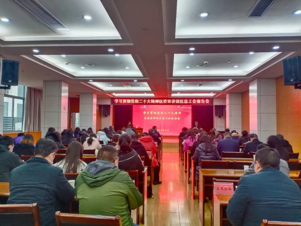 2月23日下午,江汉区总工会开展“学习贯彻党的二十大精神”区委宣讲团报告会,江汉区总工会全体干部职工,街道、社区、机关、企事业单位工会干部共计100余人参加学习。