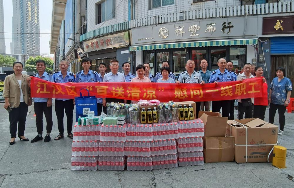 今年,为做好夏送清凉工作,江汉区总工会及时下发文件,要求全区各级工会做好劳动保护、专项督查、高温送清凉等工作,并充分利用工会经费和社会资源,筹备15万元经费和物资,购买了矿泉水、绿豆、冰糖、酸梅膏、花露水等防暑降温物品。由江汉区委常委、宣传部长、区总工会主席赵陟,区政府副区长向悦,区政府副区长余建清,区总工会党组成员分别带领慰问组,走进重大工程、重点项目以及建筑、环卫等行业露天作业重点人群,以及外卖配送员、快递员等新就业形态劳动者等高温坚守一线的户外职工,为他们送去清凉。