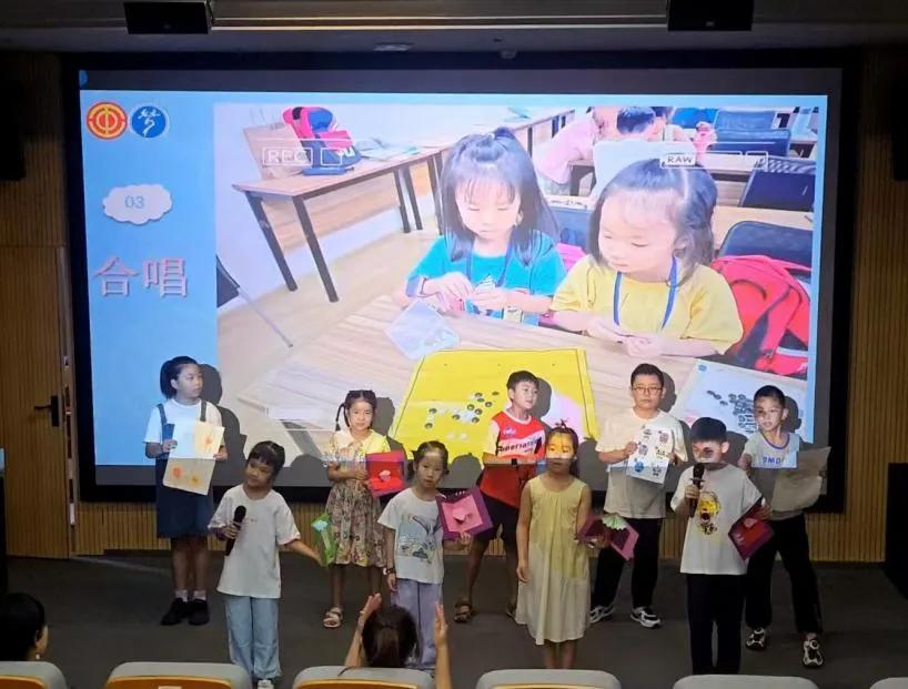 结营仪式上,孩子们展示了这段时间的学习成果。孩子们用诗歌朗诵《我有一个小小梦想》、情景话剧《文明礼仪》,展示了一个丰富多彩的暑期生活。此外,他们还带来了歌曲《小美满》及暑期作品展示。