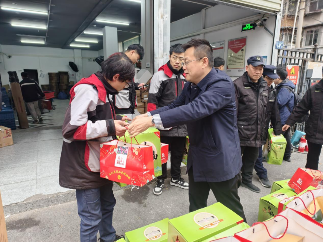在江汉关社区,慰问组见到了刚结束清扫工作的环卫职工们。他们身上还带着劳作的尘土,脸上却洋溢着质朴的笑容,这份关怀让他们感动不已。紧接着,慰问组又马不停蹄地来到顺丰速递北湖网点,十余名快递小哥正忙碌地分拣、打包快递。看到大家的到来,他们停下手中的活儿,奔波的疲惫虽未完全褪去,但此刻满是欣喜。