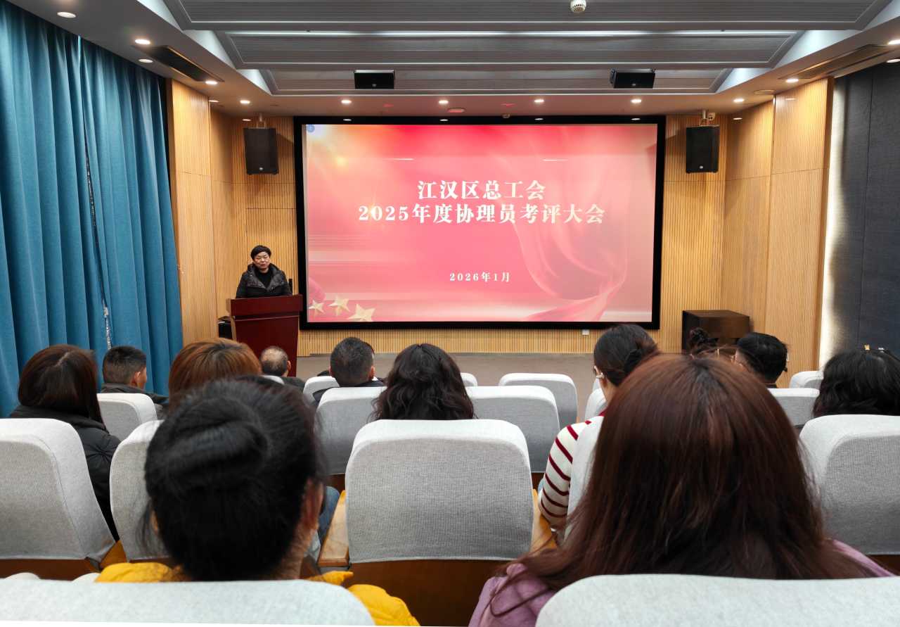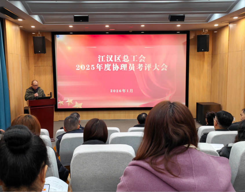 1月16日,江汉区总工会2025年度工会协理员述职考评大会在区域性职工之家一楼职工讲堂顺利举行。区总工会全体干部职工齐聚一堂,复盘总结2025年工作成效,结合实际展望未来,凝聚对后续工作的思考与打算。会议由区总工会三级调研员黄利民主持。