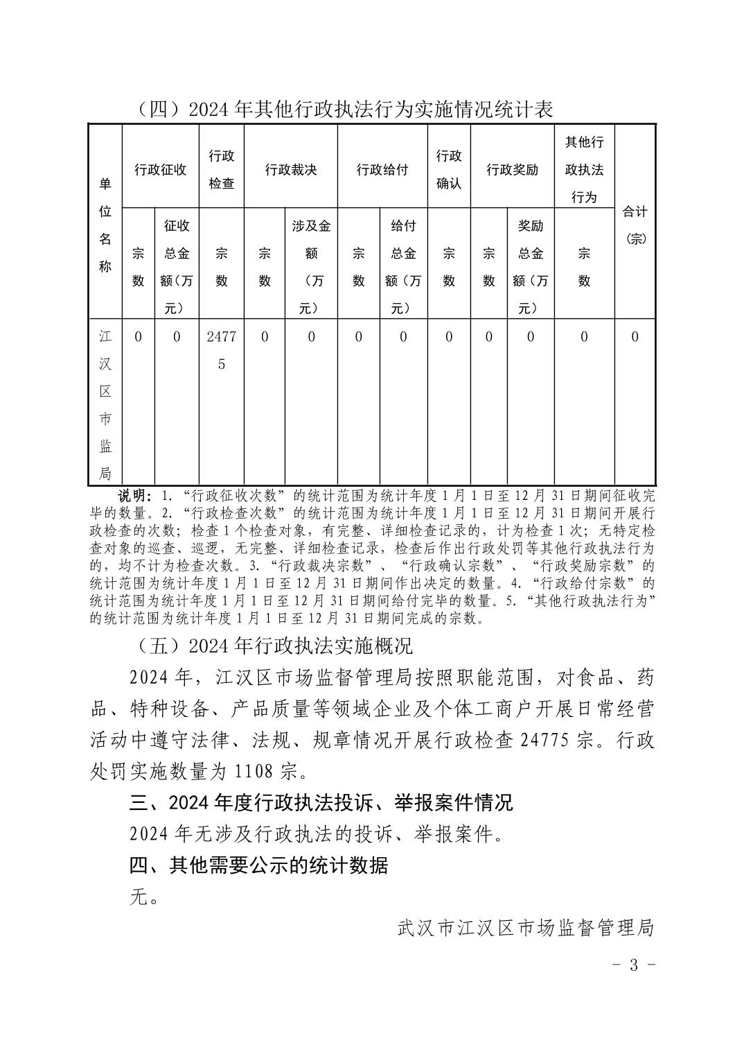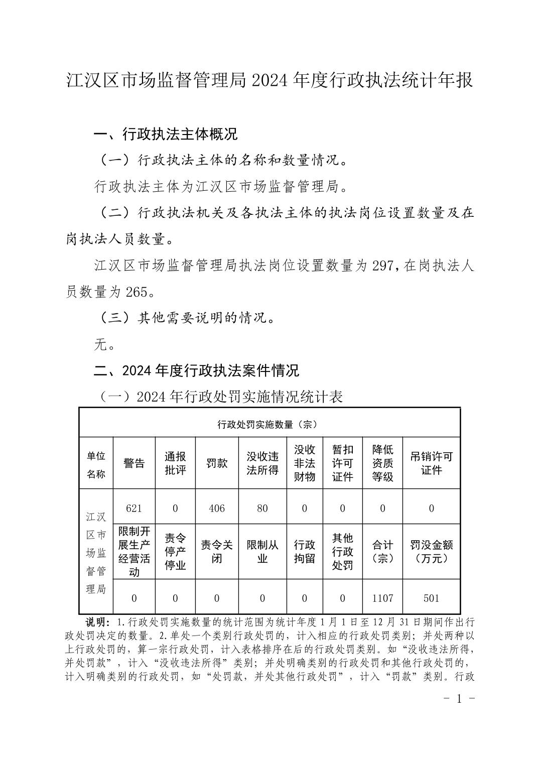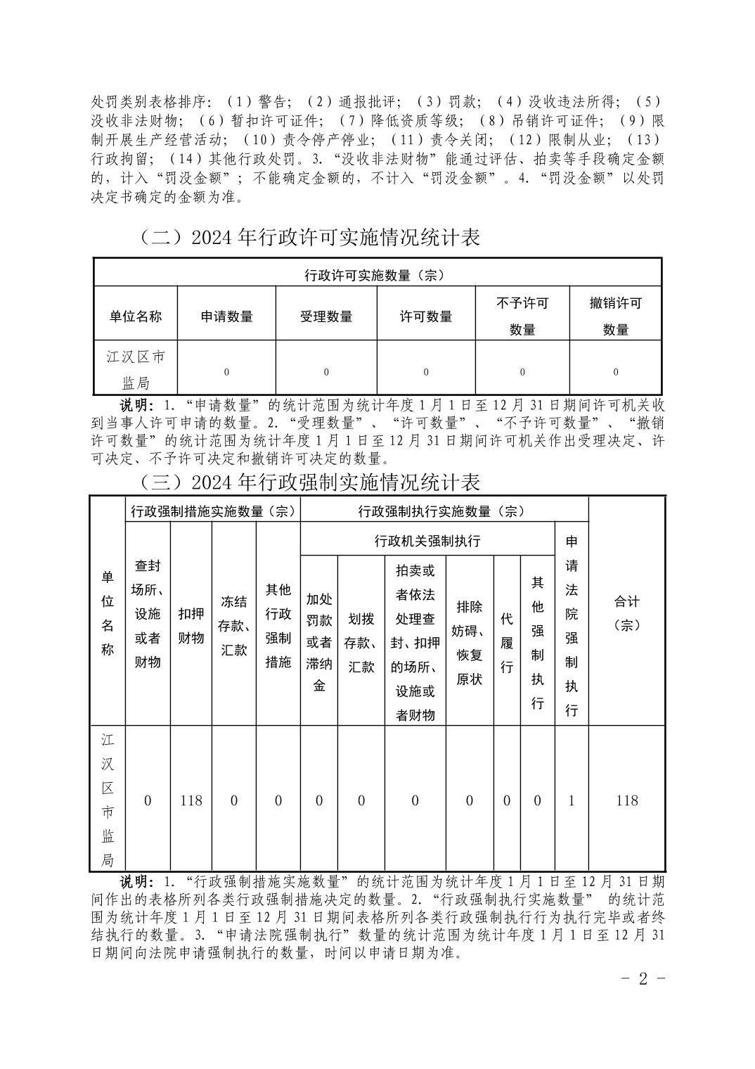 | 标 题 | 江汉区市场监督管理局2024年度行政执法统计年报 | ||