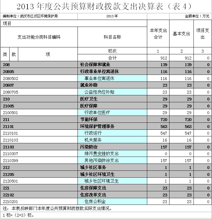 四、武汉市江汉区环境保护局2013年度公共预算支出决算表