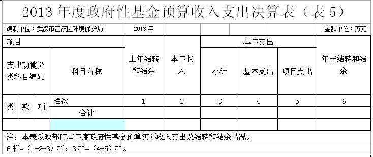 六、武汉市江汉区环境保护局2013年度政府性基金预算收入支出决算表
