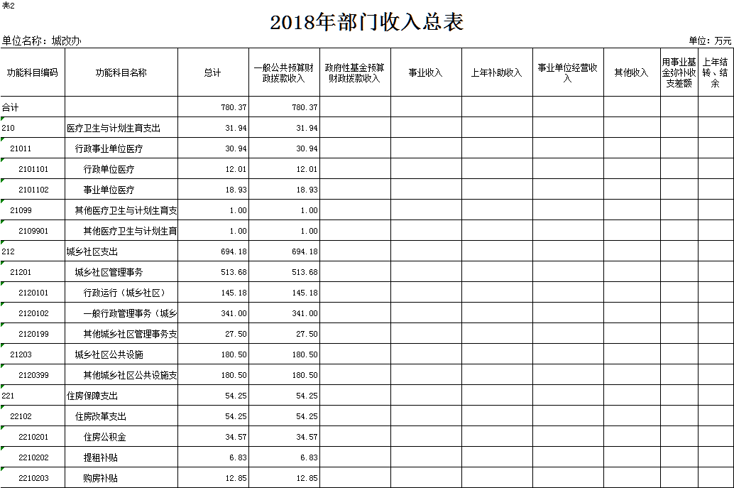 表2.2018年部门收入总表
