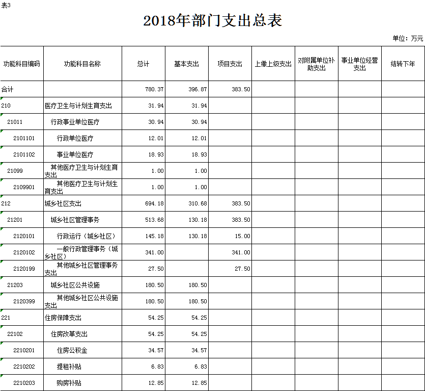 表3.2018年部门支出总表