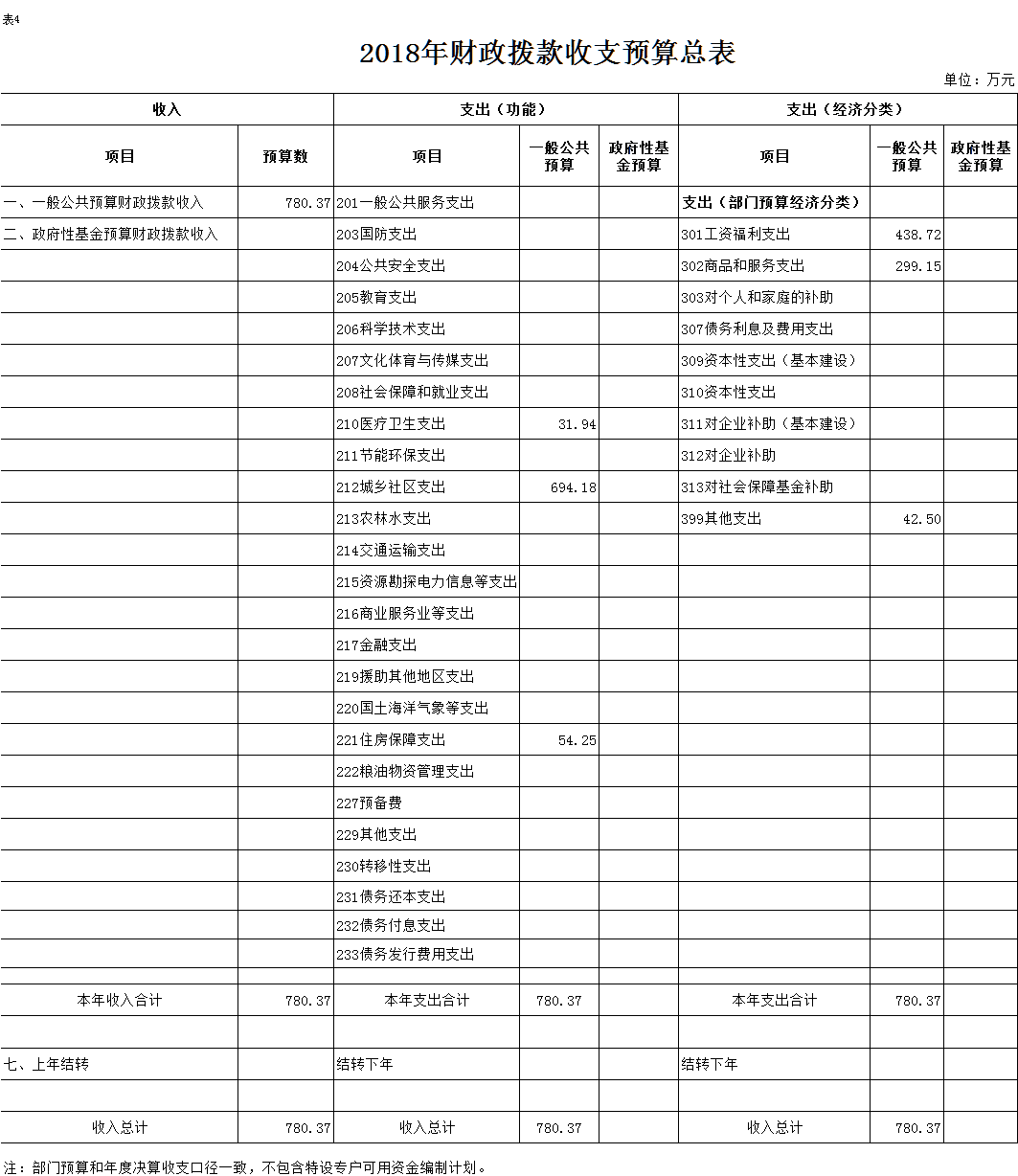 表4.2018年财政拨款收支预算总表