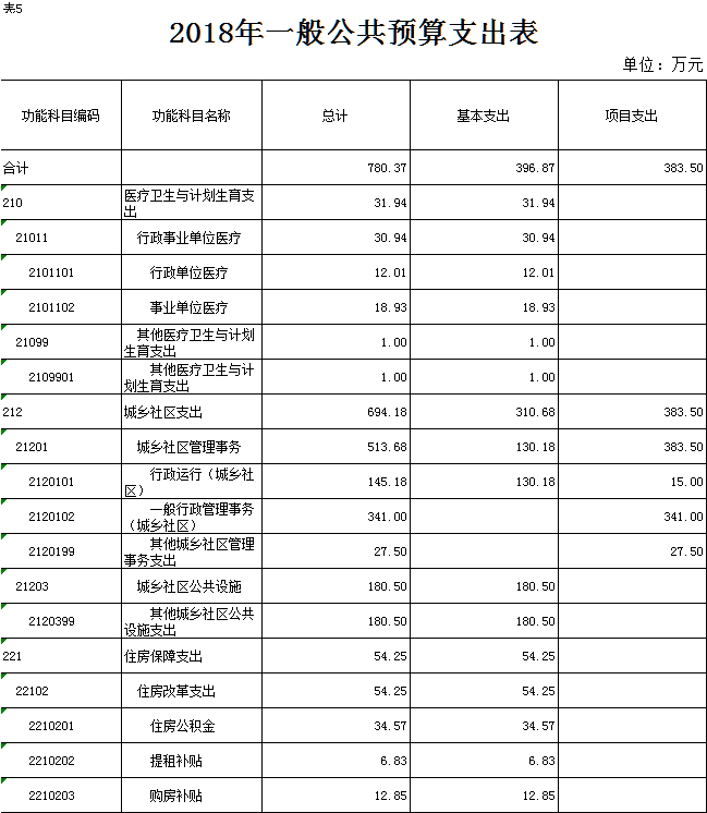 表5.2018年一般公共预算支出表