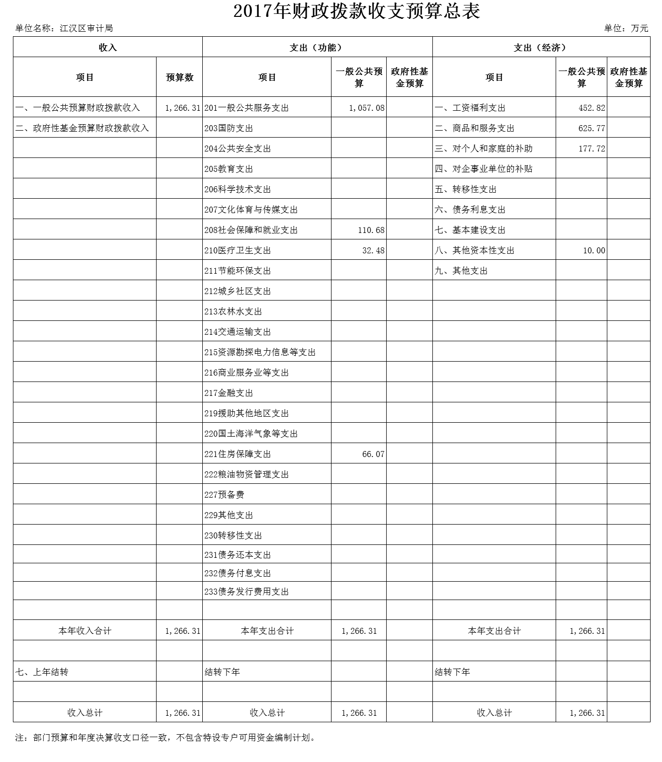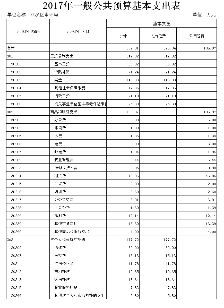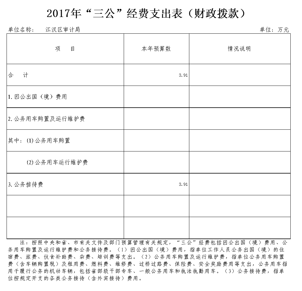 江汉区审计局2017年部门预算(及“三公”经费)公开文字说明及表格