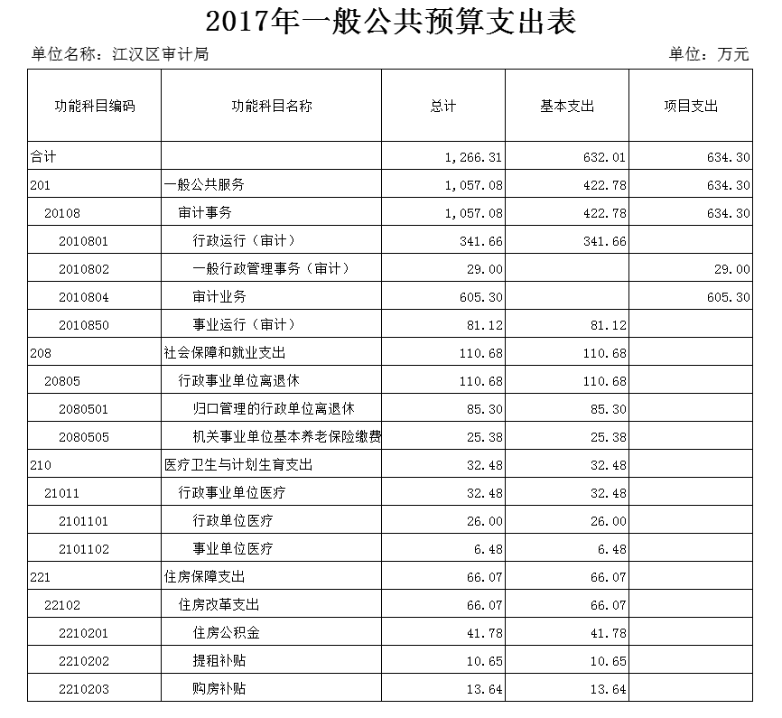 标     题 江汉区审计局2017年部门预算(及“三公”经费)公开文字说明及表格