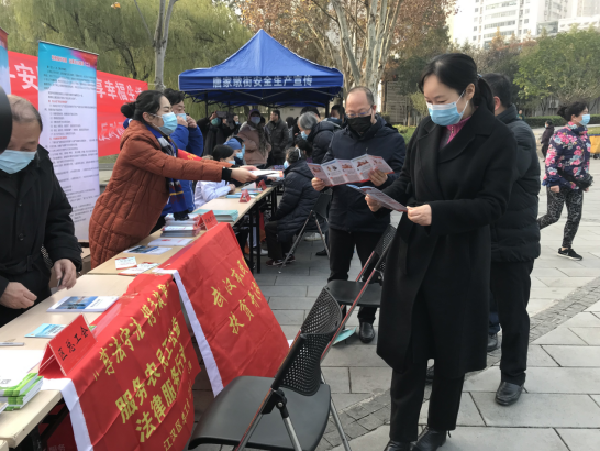 区法院、区委党校等单位汇集在江汉经济开发区宣传点,发放宪法单行本,为路过市民讲解宪法宣传日的由来演变过程。满春街宣传点做好国家宪法日宣传工作的同时注重做好防疫工作,实行法律咨询一人一位隔位就坐不扎堆,大大降低了疫情传播的风险,保障了今年“12·4”活动的安全举办。万松街把宣传触角延伸到神经末梢的社区,让社区群众在寒冷天气足不出户就能享受到法律服务咨询。