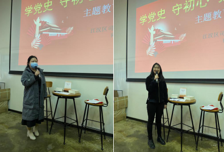 随后,新入职公务员雷盼开启了一节以“百年奋斗路,启航新征程”为主题的微党课,带领大家回顾了武汉这座英雄城市的光辉历程。另外两位新人廖义情、吴茜则就政法队伍教育整顿工作的开展谈了自己的学习教育心得,他们表示:作为新人,在参加教育整顿政治轮训的过程中,更加深刻地认识到了作为司法行政队伍中的一员所肩负的使命和担当,将立志成为一名忠诚、干净、担当的政法铁军。