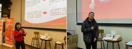 在热烈的氛围中,两名入党积极分子王冰娇、袁帆作为代表上台发言,畅谈了自己对于党史学习教育系列讲话精神的理解,汇报了本阶段党史学习教育整顿的心得体会,也坚定了对于加入中国共产党的矢志不渝的初心。