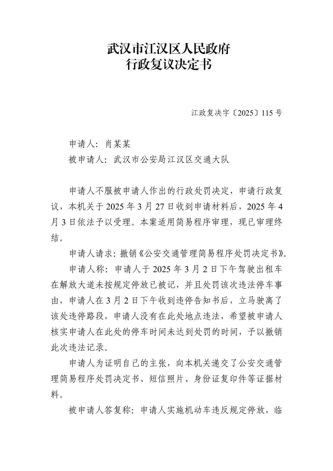 | 标 题 | 江汉区人民政府行政复议决定书-江政复决字〔2025〕115号 | ||