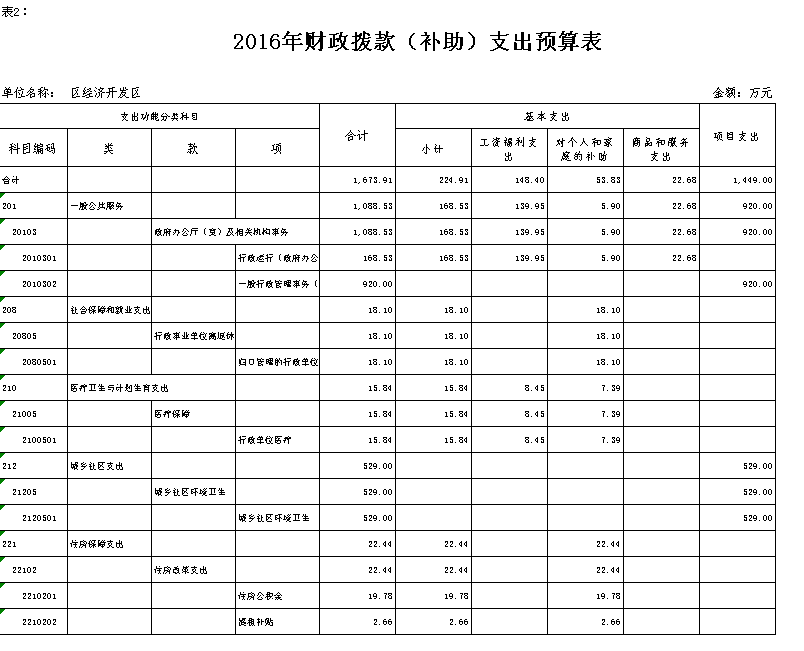 2016年 财政拨款(补助)预算数 1673.91万元,安排情况如下: