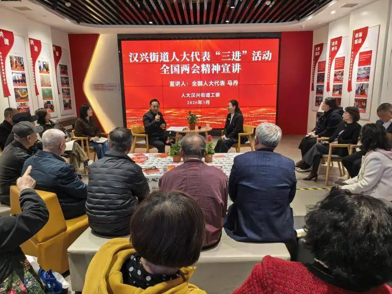 为深入学习贯彻全国两会精神,进一步提升人大代表政治素养和履职能力,精准对接基层民生需求,3月27日,江汉区人大汉兴街道工委创新理论宣讲载体,走进江汉里社区街坊会客厅,邀请十四届全国人大代表马丹作两会精神专题宣讲。