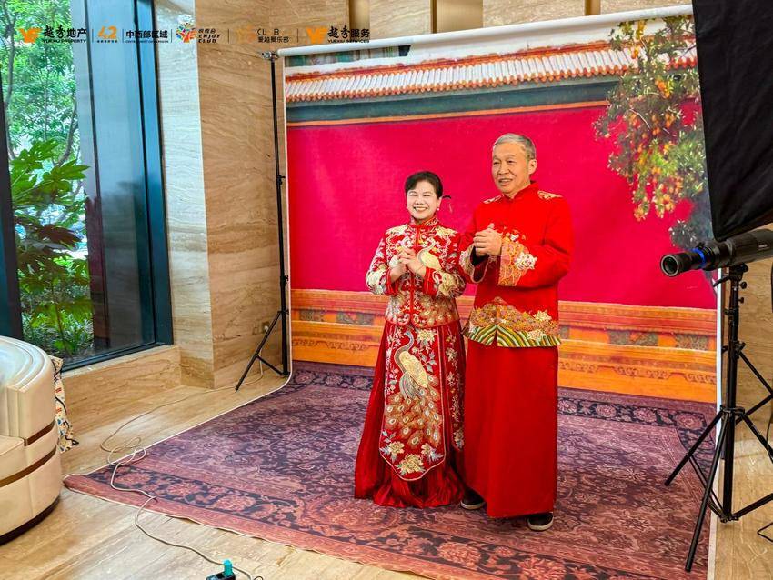 活动当天,热闹非凡,处处洋溢着幸福祥和的氛围。金婚银婚拍摄区,一对对携手走过数十载的夫妇身着整洁的服装,在镜头前深情对视、携手相拥。张叔叔与李阿姨结婚50周年,是本次活动中婚龄最长的一对,当工作人员为他们戴上头纱和胸花时,李阿姨眼眶微红:“年轻的时候条件有限,没拍过像样的婚纱照,没想到老了还能圆这个梦,谢谢物业这么贴心!”摄影师用专业的技术,捕捉下每一对夫妇之间默契的眼神、温暖的笑容,将他们相濡以沫的爱情定格成永恒的美好。